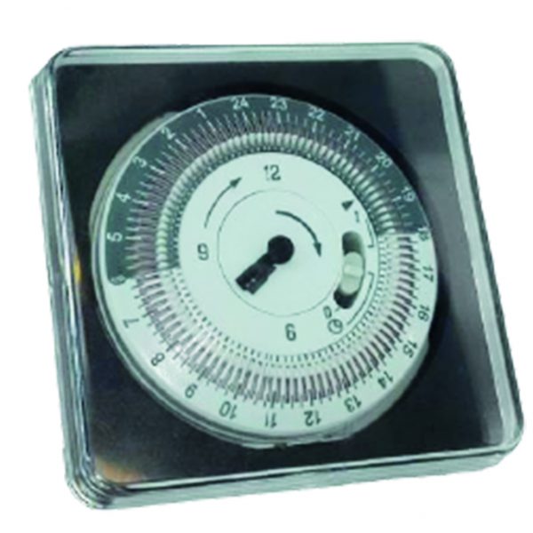 Interruptor horario analogico trascuadro sin reserva de marcha alimentacion 230 vac, 50-60 hz.
